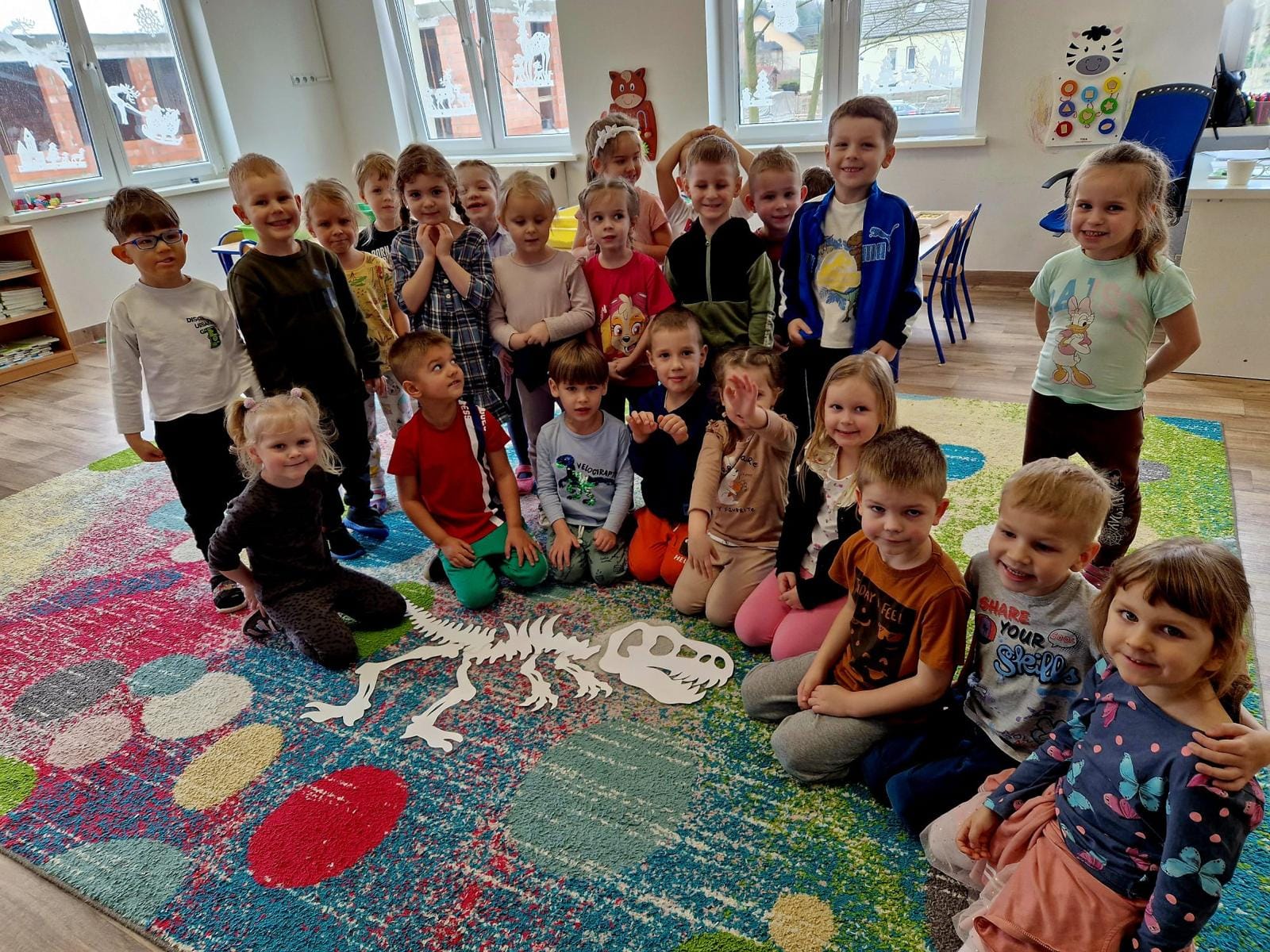 Z okazji Dnia Dinozaura, przypadającego na 26 lutego, w naszym przedszkolu zagościły dinozaury. Wiele maluchów lubi te stworzenia i dlatego Dzień Dinozaura jest wspaniałą okazją, by sprawić radość dzieciom oraz pogłębić ich wiedzę na temat prehistorycznych gadów. Dzieci przeniosły się w ich niezwykły, prehistoryczny świat za sprawą przygotowanego na tę okazję filmu edukacyjnego, dzięki któremu mogły zobaczyć, jak wyglądały i żyły dinozaury, jak się poruszały i jakie mogły wydawać dźwięki. Dowiedziały się też kim jest paleontolog i czym się zajmuje. Następnie uczestniczyły w szeregu dino -zabaw takich jak: chodzenie po śladach dinozaurów, poszukiwanie dino-skamielin w piasku, składanie szkieletu dinozaura, „podglądanie”, jaki dinozaur wykluje się z jajka, a takż dino- kodowanie. Był to szczególny dzień, pełen radosnych wrażeń.