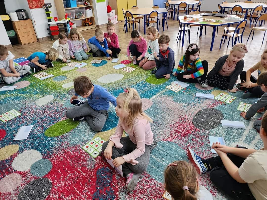 W ostatnim czasie w grupie Żółwików zostały przeprowadzone kolejne zajęcia w ramach projektu mBanku "Rosnę z matematyką". Zajęcia rozpoczął teatrzyk Kamishibai, który wprowadził w tematykę zajeć i pozytywnie nastroił dzieci do swobodnego nabywania wiedzy. Kamishibai to wywodząca się z Japonii technika czytania i prezentacji książki obrazkowej – teatr obrazkowy lub inaczej teatr ilustracji. W trakcie warsztatów dzieci przypomniały sobie bajkę o Królewnie Śnieżce, poznały takie pojęcia jak całość, połowa i ćwiartka oraz grały w matematyczne bingo.