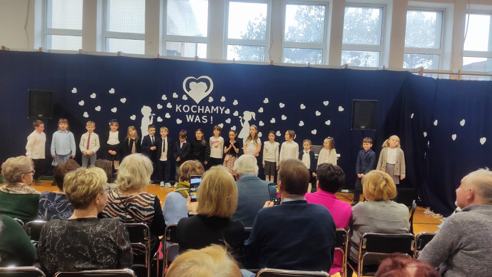Wieczorek był podsumowaniem powyższego działania innowacyjnego Pani Weroniki Jacyk. Działania, które przypomniało o tym, jakie piękno kryje się w poezji polskiej. W spotkaniu udział wzięli uczniowie całej szkoły, dyrekcja, grono pedagogiczne a także rodzice. Każdy w tym czasie zanurzył się w przepięknych, nostalgicznych i refleksyjnych recytacjach uczniów klasy 7, którzy pod opieką swojej wychowawczyni – Pani Weroniki, porwali wszystkich gości w magiczny, bajeczny, niezwykły świat. Nawet najmłodsi z uwagą wsłuchiwali się w recytowane utwory i uważnie obserwowali zmieniający się, ruchomy obraz na scenie... Mowa tu o ŻYWYM TEATRZE CIENIA, który mogliśmy podziwiać podczas prezentowanych utworów. Niezwykła gra cieniem uczniów klasy 7 przepełniła ten wieczór nostalgią i niezwykłym skupieniem. DŹWIĘKI SAKSOFONU, wzruszający podkład muzyczny, wytwarzanie mgły podczas występu - to elementy, które bez wątpienia uatrakcyjniły to spotkanie.