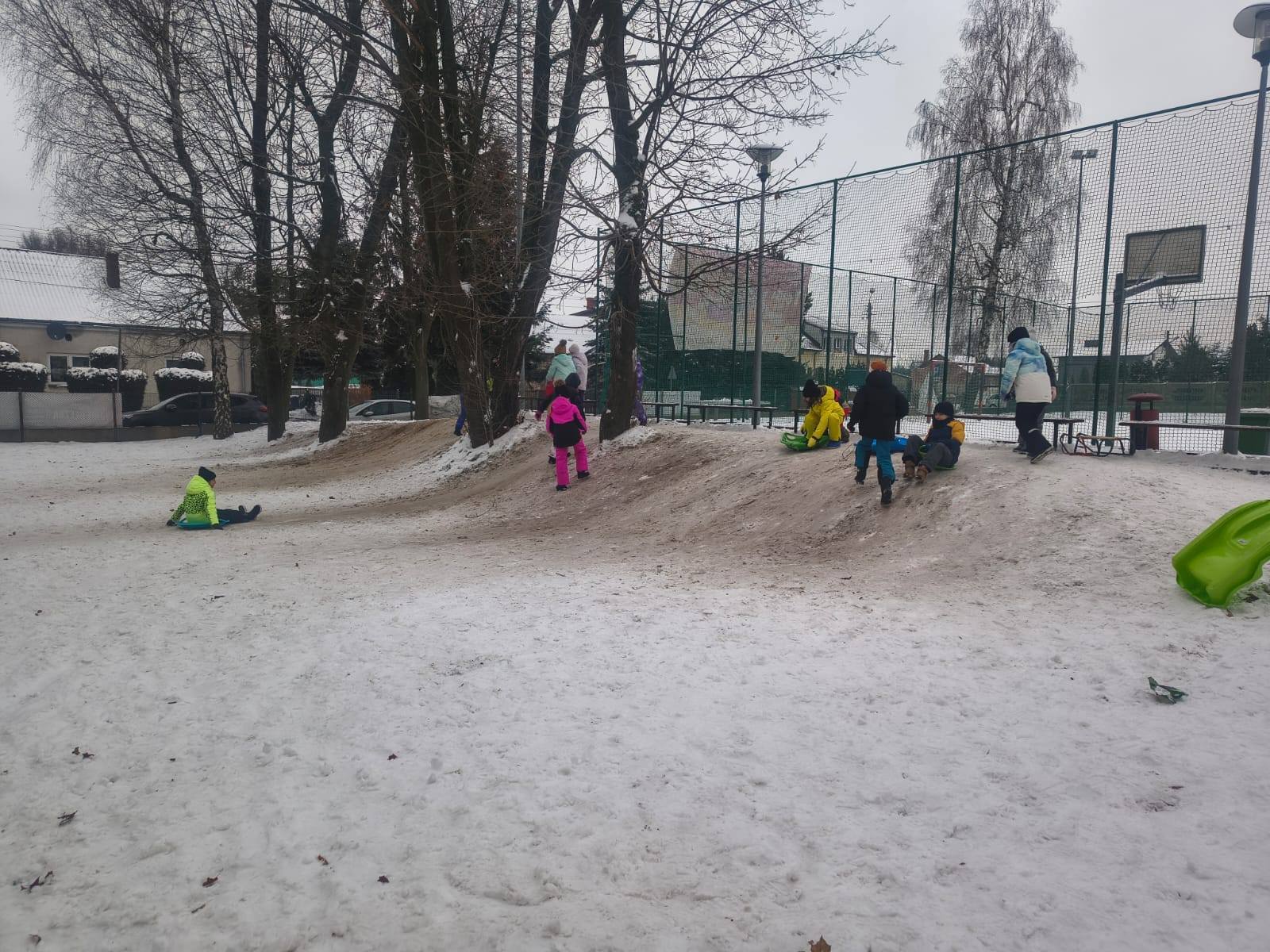 W ostatnim czasie podczas zajęć wychowania fizycznego uczniowie klas 1–3 uczestniczyli w zabawach na śniegu na świeżym powietrzu. Dzieci brały udział w różnych formach aktywności ruchowej, takich jak lepienie bałwanów, rzuty śnieżkami do celu oraz biegi i zabawy zespołowe. Zajęcia przebiegały w radosnej atmosferze, sprzyjały integracji uczniów oraz rozwijaniu sprawności fizycznej. Uczniowie byli odpowiednio ubrani i przestrzegali zasad bezpieczeństwa podczas zabaw.