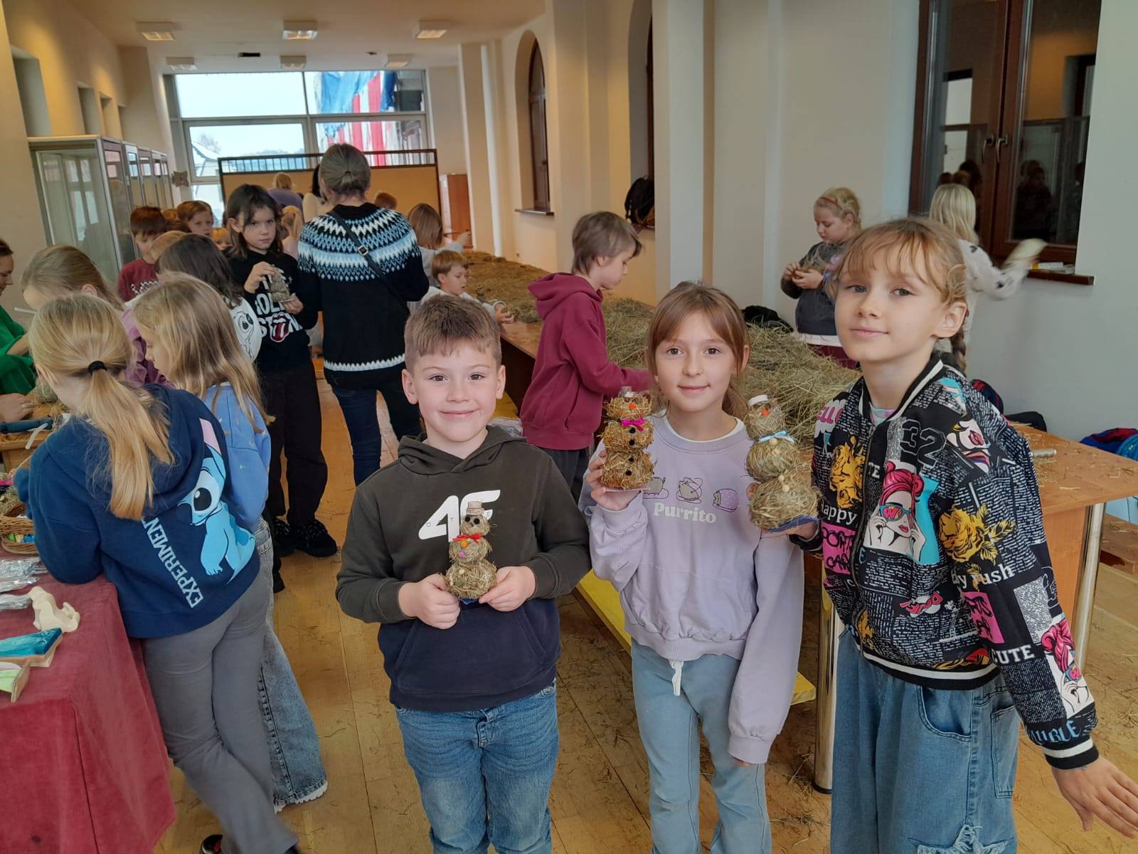 Podczas zajęć uczniowie mieli okazję poznać tradycyjne techniki tworzenia dekoracji świątecznych oraz samodzielnie wykonać ozdoby. Entuzjazmem cieszyły się bałwanki z siana. Powstały zabawne, urokliwe figurki, które wywołały dużo uśmiechów.